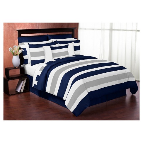 navy and gray striped comforter